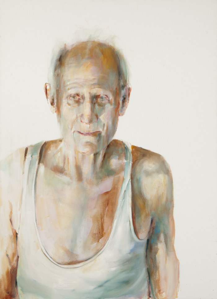 zelfde hemd. Al die jaren ben ik hem blijven schilderen. Hij werd ouder en zijn lichaam kreeg het uiterlijk die bij het ouder worden